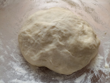 Вымешивайте тесто и по необходимости подсыпайте еще муку. Тесто постепенно станет однородным, гладким, оно практически перестанет прилипать к рукам. Но не перестарайтесь с мукой — тесто должно остаться мягким. У меня в итоге ушло меньше муки.