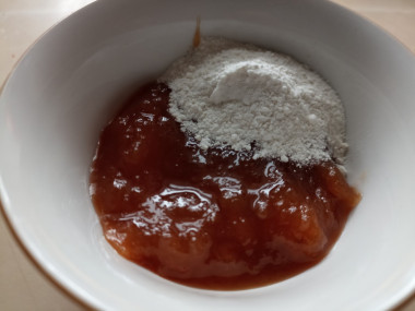 Дрожжи всыпьте в стакан муки, перемешайте. Просейте этот стакан в жидкие ингредиенты. Затем просейте второй. Пока остановитесь добавлять муку. Начните замешивать тесто сначала вилкой, затем руками.