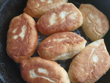 Жарьте пирожки на среднем огне. Сначала до румяности на одной стороне, затем переверните на другую.