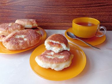 К чаю решила сделать жареные в масле пирожки. Тесто для них замешивается быстро и просто. Так как в этом рецепте сухие дрожжи сразу добавляются в муку, советую использовать проверенные заранее дрожжи, которыми вы пользуетесь обычно. Муки у меня ушло немного меньше, я ориентировалась на консистенцию теста, чтобы оно получилось мягким, но не липким. Когда тесто хорошо поднялось, приступила к формированию пирожков. Я использовала домашнее яблочное повидло, добавив к нему немного картофельного крахмала. Жарила пирожки на растительном масле в толстостенной сковороде. При жарке они хорошо поднимаются. Получились очень вкусные, пышные пирожки с хрустящей корочкой и ароматной яблочной начинкой. Спасибо за рецепт, katushafin!