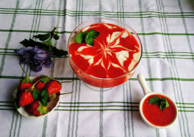 Домашний йогурт готовлю постоянно. Интересно было попробовать его с клубничным пюре. Йогурт у меня получился гуще по консистенции, чем клубника с сахаром, поэтому он немного "тонул" в сладком соусе) Сам кисломолочный продукт получился очень нежным и вкусным, особенно это заметно на суточном продукте. Клубнику собрала свежую с грядки, осенняя особенно ароматна и вкусна, а еще она не такая водянистая как летом. В тандеме эти два продукта отлично сочетаются. Сахар, добавленный в клубничное пюре тоже играет немаловажную роль, вкус становится ярче и насыщеннее. Для любителей домашней кисломолочки вовсе не трудно приготовить свежую порцию вкусняшки) Десерт выглядит красиво и ярко! Вкус очень нежный, сладкий. Аромат клубники так и манит попробовать эту вкусноту) Дочке особенно понравилось. Да и муж в восторге, он на завтрак всегда ест йогурт с вареньем, а я ему вот такой вариант предложила) Спасибо за рецепт!