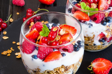 Ольчик, замечательный десерт в стакане:) Я тоже частенько такое готовлю, правда ягоды в пюре ленюсь перетирать, всегда добавляю их целиком, а еще для сытости и пущей пользы добавляю домашнюю гранолу, получается полноценный перекус)))Иришка))) Спасибо)))