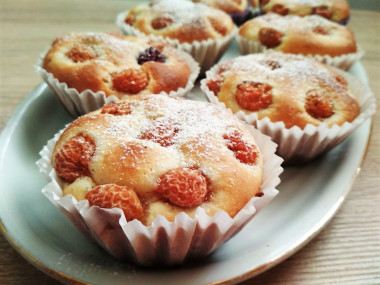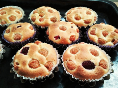 Я не приветствую маргарин, поэтому заменила его в рецепте растительным маслом и немного уменьшила количество сахара в рецепте. Малину не смешивала с тестом, а выкладывала её по мере наполнения тестом формочек - в середину и сверху. Выпекала кексы в бумажных капсулах (чтоб не пачкать формочки), без труда сняла их после запекания, остались красивые рифлёные бока. Кексы с малиной получились замечательные! Мягкие, нежные, достаточно сладкие, с выраженной кислинкой от жёлтой малины. Спасибо за рецепт!
