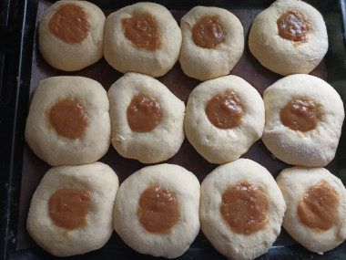 К чаю испекла ватрушки с повидлом из дрожжевого теста. Готовится тесто безопарным способом, быстро и просто: соединила все сухие ингредиенты, отдельно смешала жидкие, и объединив их вместе, замесила мягкое тесто. После расстойки в теплом месте сформировала ватрушки, дала им подняться на противне и выпекала в духовке при температуре 190 градусов 20 минут. Повидло использовала яблочное, домашнее. Булочки хорошо поднялись, получились мягкие, воздушные, ароматные. Спасибо автору за рецепт!