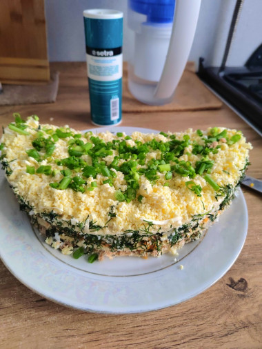 Очень вкусно! Даже не ожидала!) Коржи разрезала и верхний слой смешала сыр с желтками. Все блендером рубила) Спасибо. Буду готовить еще.