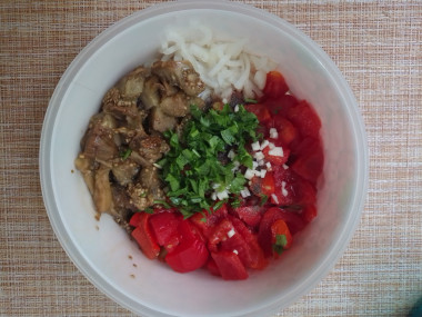 Шикарный салатик! Супер! Из баклажанов, болгарского перца, помидор можно еще такое блюдо приготовить
