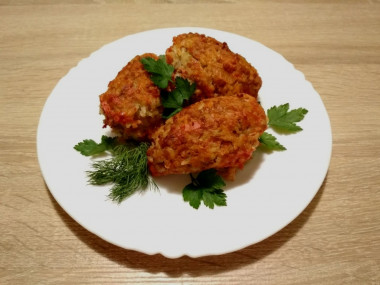 Ленивые голубцы я готовила, а вот ленивые перцы с фаршем и рисом - первый раз. У меня был нарезанный замороженный болгарский перец, который я прожарила на сковороде вместе с луком и морковью. Добавила отваренный до полуготовности рис и свино-говяжий фарш. Посолила и поперчила по вкусу. Сформировала продолговатые котлетки и выложила их одним слоем в большую форму. Залила соусом, для которого развела в теплой кипяченой воде сметану, томатный соус и соль. Вылила соус в форму так, чтобы они покрывали ленивые перцы более, чем на половину. Накрыла форму крышкой и запекала около 40 минут. Очень вкусное получилось блюдо! Не скажу, что в нем доминирует привкус перца, в моем случае замороженный перец не чувствуется вообще. Преобладает кисловатый вкус томатно-сметанной подливы, которой пропитываются котлетки. Результат отличный, рекомендую такие перцы хозяйкам, которые хотят приготовить простой и быстрый ужин.