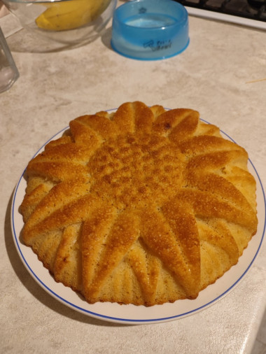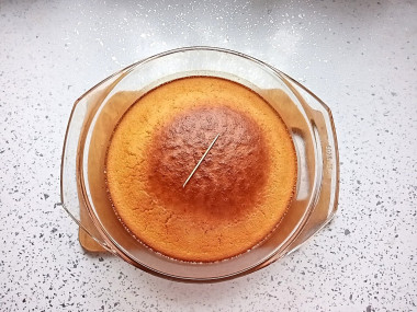 Формы с отверстием по середине у меня нет, поэтому использовала обычную диаметром 20 см. Выпекался манник в моей духовке 45 минут.