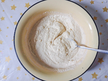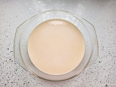 Хорошо перемешайте манку с ряженкой и оставьте ее для набухания на 30-40 минут.