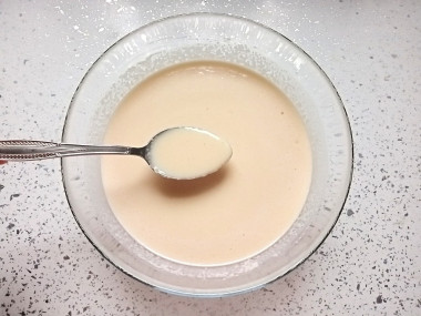 Возьмите глубокую миску и влейте в нее ряженку. Всыпьте манку. Ее количество должно быть равно объему ряженки. Поэтому отмеряйте их одним стаканом. То есть на 500мл ряженки надо взять два стакана манки объемом 250мл.