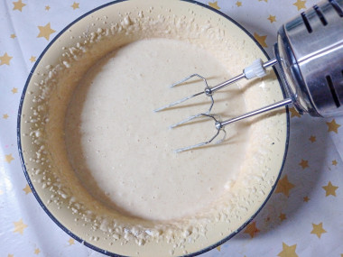 Через положенное время вбейте в миску яйца и взбейте все вместе миксером.