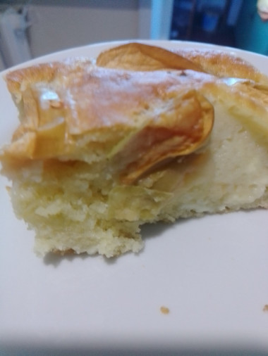 Обычно я готовлю простую шарлотку, но в этот раз всё было необычно... Нашла рецепт шарлотки творожной с яблоками в духовке. Легко замесила тесто при помощи блендера, насадкой венчик. А яблоки оказывается закончились. Поэтому вместо яблок в тесто добавила зефир, который постаралась спрятать в тесте, чтобы не подгорел при выпечке. Пирог получился ароматный и нежный. Вышло так, как любят у нас в семье, чтобы вкус творога чувствовался в выпечке. Значит в такое тесто можно положить любую сочетающуюся с творогом начинку и будет очень вкусно! Благодарю за рецепт!