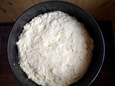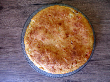 Готовый пирог немного поднимется и станет румяного, золотистого цвета. Извлеките пирог из духовки и немного остудите.