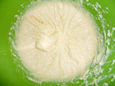Затем включите миксер и немного всю массу взбейте до пышной пены. Взбивать до воздушной массы не надо. Достаточно лишь, чтобы сахар растворился в яйцах.