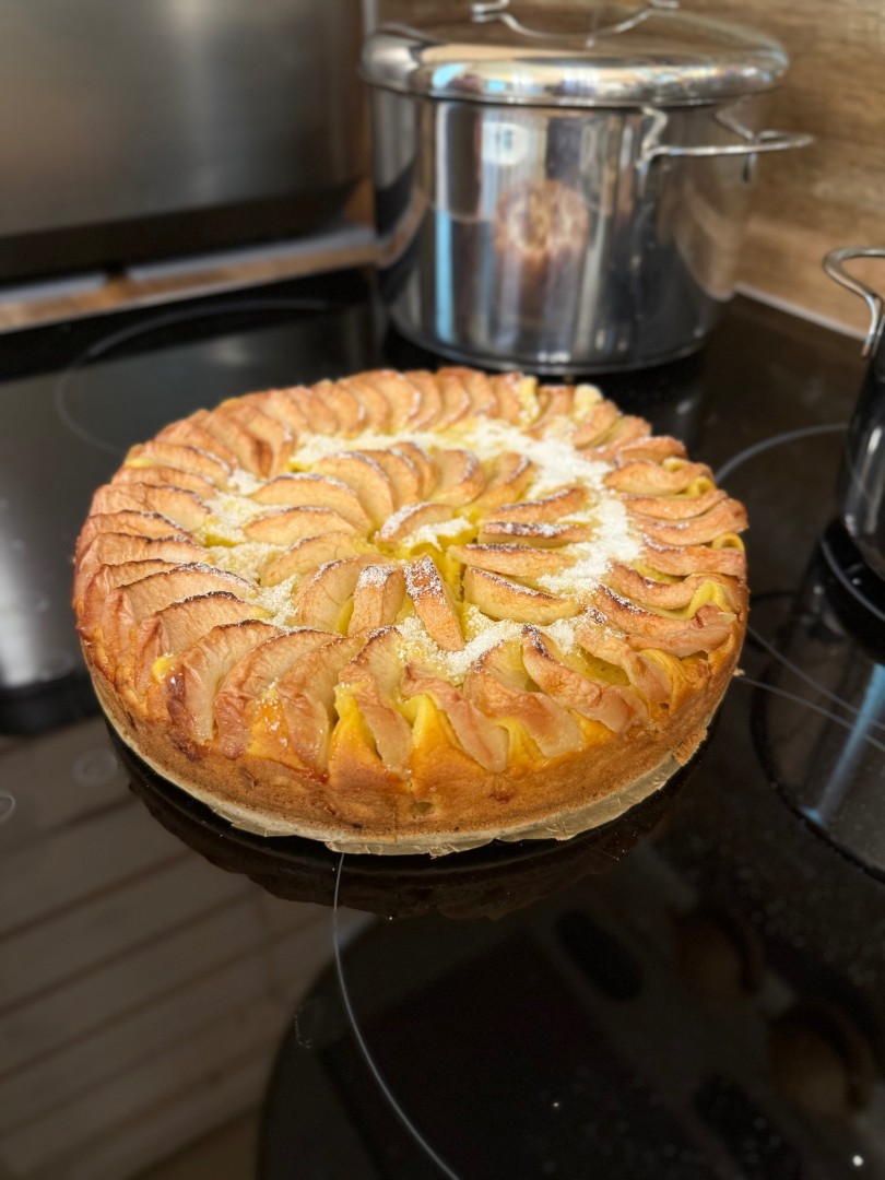Правда, я взялась делать эту шарлотку, но у меня закончился сахар неожиданно для меня.