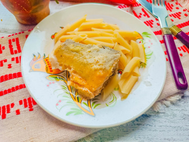 Навага получилась нежная, сочная, очень вкусная. Подавала рыбу с макаронами.