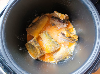 Обжарила рыбу на режиме «Жарка» примерно по 4 минуты с каждой стороны и по тушила в яйце на режиме «Тушение» еще примерно 10 минут.
