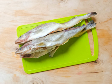 Разморозить навагу в холодной воде, затем очистить от чешуи и внутренностей. Срезать плавники и хвостовую часть. Затем разрезать навагу на куски так, чтобы она поместилась в мультиварку по длине.