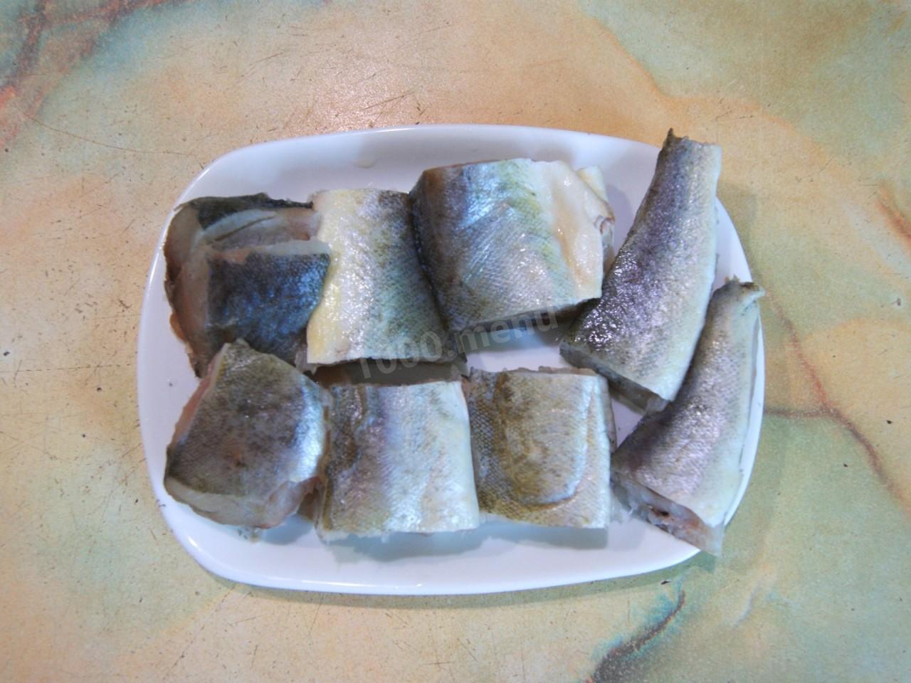Хорошенько промойте рыбу под проточной водой. Отрежьте плавники и хвостовую часть. Порежьте тушку рыбы на куски.