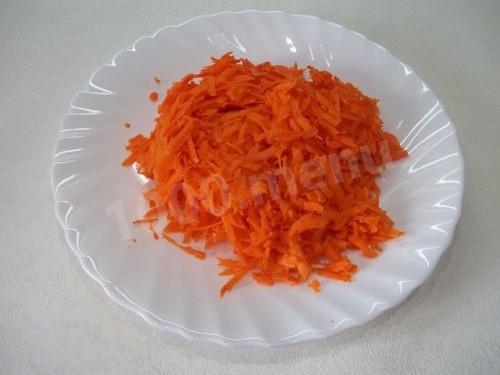 Очистите морковь (удобно использовать овощечистку) и натрите на крупной терке. Если натереть морковь на средней или мелкой терке, она может потерять форму при тушении. О том, как правильно работать с тёркой, читайте в статье под шагами.