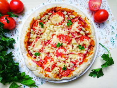 Такое тесто отлично подходит для любого вида пиццы. Можно использовать для её наполнения грибы, колбасу, помидоры, сыр и прочие разные ингредиенты.