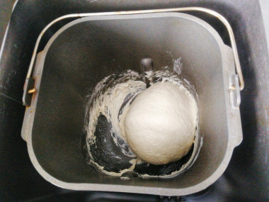 Замешивать тесто в хлебопечке проще простого. Готовила я из предложенного в рецепте количества ингредиентов. Воды понадобилось на 50 мл больше. Режим «Тесто» на моей хлебопечке работает 1 час 30 минут.