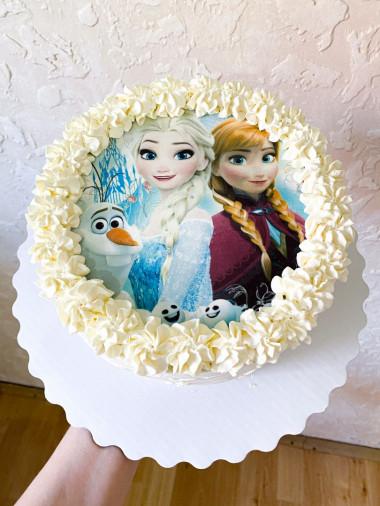 Проще всего для украшения заказать или купить сахарную бумагу с рисунком персонажа из мультфильма. Вариантов оформления этого торта Холодное сердце очень много, все они разные. Можно использовать мастику, сделать торт объемным, украсить пластиковыми фигурками персонажей или взять для этого куклу. А вот добавить зимнего колорита как раз помогают всякие разные снежинки)) Если высечки у вас нет, попробуйте вырезать их по трафарету.