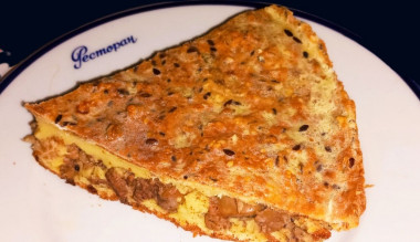Пирог с куриной печенью — это пикантно! Очень вкусное и сытное сочетание.