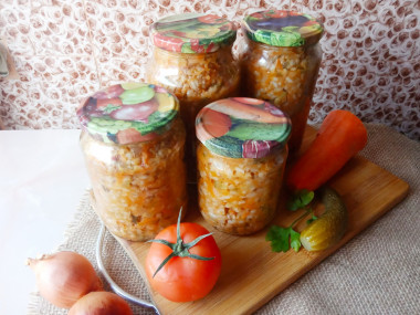 Заинтересовал рецепт рассольника на зиму с солёными огурцами. Для экономии времени при варке рассольника раньше я просто в мультиварке отваривала до готовности побольше перловки, делила на порции и хранила в морозилке. А следуя рецепту автора, рассольник приготовится ещё быстрее! Кое в чём я отступила от технологии, но мне так привычнее))). Во-первых, увеличила порцию.Промытую перловку готовила в мультиварке на функции "каша" в течение часа. За это время можно приготовить овощи для обжарки. Сначала обжарила лук с морковью, потом добавила нарезанные соленые огурцы, томат( у меня был домашний томат), любимые специи. Когда перловка в мультиварке приготовилась, добавила к ней приготовленные в сковороде овощи, долила рассол от огурцов и проварила всё вместе ещё примерно 20 минут. Разложила рассольник по банкам, герметично закрыла, оставила остывать "под шубой" . Отличная идея, отличная заготовка. Спасибо, UnicornSteak!