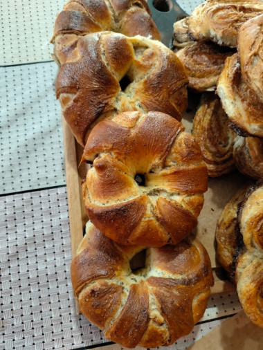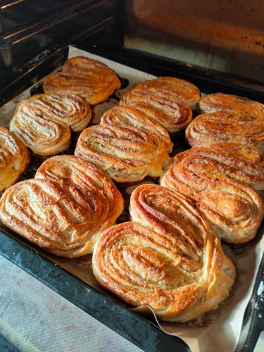 Я так боялась переложить муку, что, по-видимому, её не доложила. Так что тесто у меня получилось, как мне кажется, черезчур липким. Наверное, поэтому внутренние слои в "сердечках" слиплись, и плюшки стали похожими на что-то непонятное.
