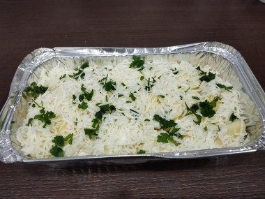 Для запекания берите любую жаропрочную форму. Дно и бока формы смажьте растительным маслом. Выкладывайте слоями картофель из сливок, укроп и лук.