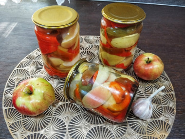 Интересная заготовка, которая будет несомненно вкусной. Зимой попробуем. Очень уж аппетитно выглядят в банке перчик и яблоки.