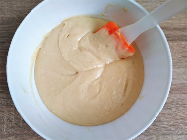 Перемешайте тесто венчиком до однородности, оно должно получиться, как густая сметана. При необходимости вы можете самостоятельно отрегулировать желаемую консистенцию теста, добавив немного муки или жидкости.