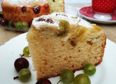 Захотелось поделиться фото моего пирога с крыжовником, где хорошо видно, какой он рыхлый и влажный по структуре. При этом достаточно сладкий, ягоды отлично завершают всю гармонию вкуса. Супер! Спасибо за хороший рецепт!