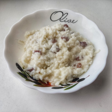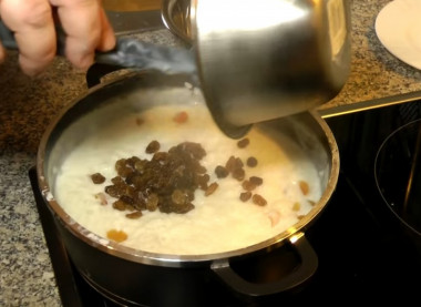 За изюм отдельное спасибо. С ним вкуснее. Я просто готовлю рисовую кашу на молоке и воду не добавляю.