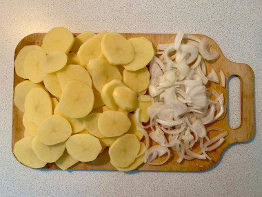 Хороший рецепт, спасибо! Я еше на картошку добавил бы нарезанных помидор.
