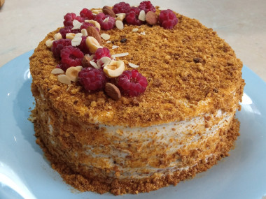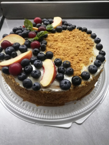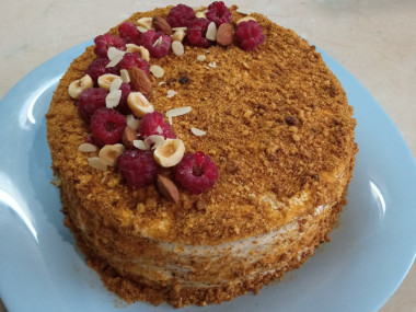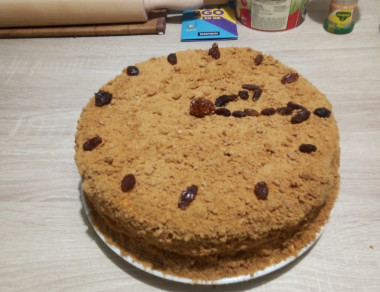 Вот и всё. Наш вкусный и нежный медовый торт со сметанным кремом готов.