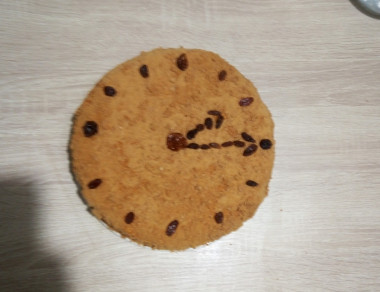 Перенесите лист с коржом на противень и отправьте в духовку.