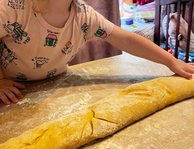 Готовое тесто разделите на 8-10 частей.