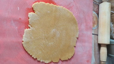 Из холодильника доставайте по одному шарику. Раскатывайте тесто сразу на бумаге для выпечки. Если оно сильно пристает, то бумагу и скалку можно слегка припылить мукой. Раскатывайте тесто в пласт толщиной около 2-3 мм.