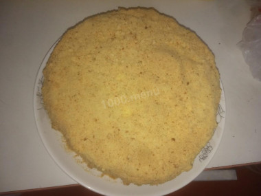 Сделайте крошку для обсыпки торта. Для этого обрезки измельчите до состояния мелкой крошки. Я для этого использовала кухонный комбайн.