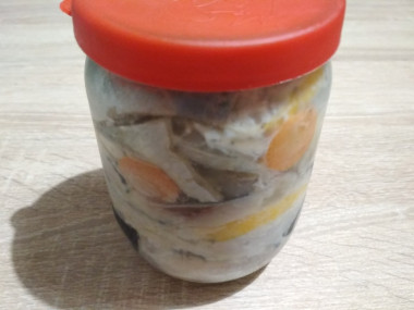 Закрываем банки плотными крышками и ставим в холодильник на 2-3 дня. каждый день по несколько раз нужно переворачивать банки, чтобы маринад распределялся по рыбе равномерно.