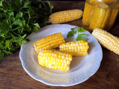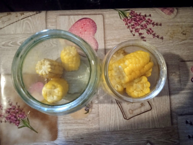 У нас пошла молодая кукуруза, нашла на сайте интересный рецепт и решила попробовать. Всё предельно просто и ясно. Кукурузу почистила и порезала пополам початки. Отварила початки в не соленной воде, как пишет автор, минут 15 (она у меня молоденькая). Уложила в банки початки (у меня 0.5 л и литровые баночки), залила кипятком. Затем приготовила маринад по описанию в рецепте. Разлила маринад в баночки и закатала. Тепло укутала и дала остыть. Кукуруза на зиму в початках консервированная получилась на отлично. Сразу же попробовала и маринад, и саму кукурузу. Это и вкусно, и оригинально, и красиво смотрится в баночках. На вкус получилось немного кисленько, и немного сладенько. Эксперимент прошел хорошо. Рецепт этот мне понравился своей простотой, быстротой и никаких заморочек. Всем советую попробовать! Спасибо автору!