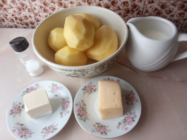 Как сделать толченую картошку с молоком и маслом? Подготовьте продукты. Картофель лучше подойдет сортов, которые содержат много крахмала — они лучше развариваются. Молоко подойдет любой жирности, его количество может разниться в зависимости от картошки и желаемой консистенции пюре. Масло и сыр выбирайте вкусные, качественные, натуральные.
