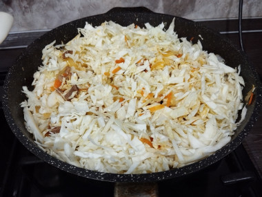 Добавьте в кастрюлю капусту. Тушите, помешивая, около 15-20 минут до мягкости капусты. Время указано приблизительно.
