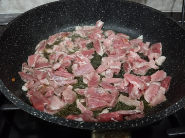 В кастрюле с толстым дном на сильном огне разогрейте растительное масло. Выложите мясо и обжарьте, помешивая, до румяной корочки. В конце посолите. Влейте в кастрюлю примерно 200 мл горячей воды, чтобы мясо было покрыто до половины. Тушите под крышкой на минимальном огне около 1 часа до мягкости говядины. Как выбрать растительное масло для жарки читайте в статье на эту тему. Ссылки в конце рецепта.
