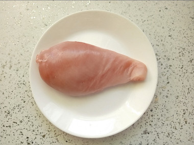 Отделите грудку от костей, жил и кожицы. Имейте в виду, что грудкой обычно именуют часть курицы с кожицей и костью. Нам понадобится именно филейная часть. Её также можно приобрести уже готовую. Это ускорит процесс приготовления. Даже без всего грудка получается невероятно вкусной, но при желании вы можете на этом этапе натереть курицу своими любимыми специями.