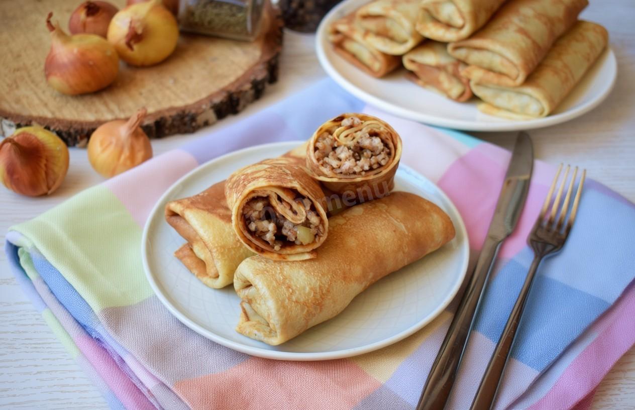 Идеальное тесто для тонких блинчиков! Фаршированные блины с мясным фаршем, тают во рту! Приготовила ещё про запас.
