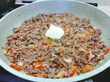 Так как фарш у меня из телятины, добавила для сочности помидорку и небольшой кусочек сливочного масла.