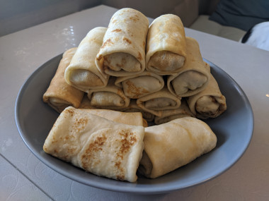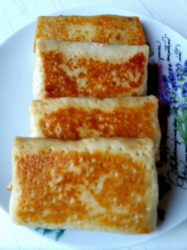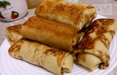 Спасибо большое за рецепт!Быстро и очень вкусно!Тесто получилось тонкое,быстро жарятся и легко заворачиваются. Это первый раз когда я фарширую блины самостоятельно, раньше всегда покупала готовые "С пылу с жару", но конечно же домашние намного вкуснее!!!Одну порцию смели сразу,сейчас хочу сделать ещё и убрать в холодильник,как полуфабрикат.